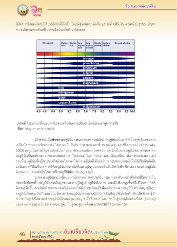 อะลูมินัมไอออน (Al ) และโมโนไฮดรอกซิลอะลูมินัมไอออน (Al(OH)2 ) ซึ่งเป็นรูปที่เป็นพิษกับพืช เมื่อพีเอช 4.7-