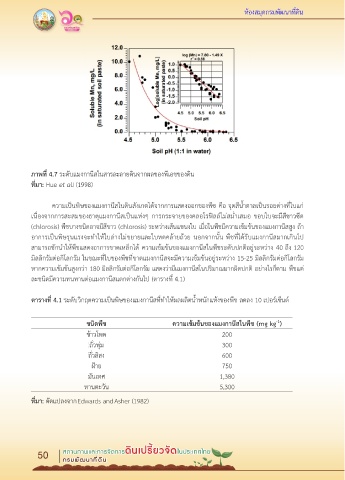 ตารางที่ 4.1 ระดับวิกฤตความเป็นพิษของแมงกานีสที่ทำให้ผลผลิตน้ำหนักแห้งของพืช ลดลง 10 เปอร์เซ็นต์