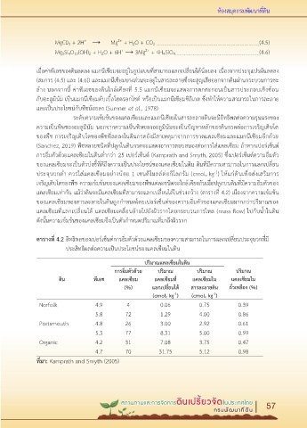 (สมการ (4.5) และ (4.6)) และแมกนีเซียมบางส่วนจะอยู่ในสารละลายซึ่งจะสูญเสียออกจากดินผ่านกระบวนการชะ
