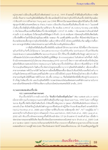 กว่าดินปกติ จากการศึกษาของ Phung and Lieu (1994) ที่ศึกษาปริมาณและชนิดของจุลินทรีย์ในดินเปรี้ยวจัดซึ่ง