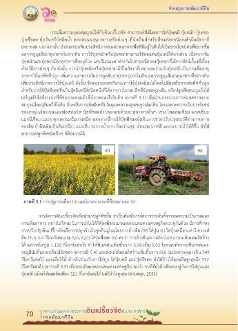 กิโลกรัมต่อไร่ และเมื่อใช้น้ำล้างดินร่วมกับการใส่ปูน ใส่ปุ๋ยเคมี และปุ๋ยพืชสด ทำให้ข้าวให้ผลผลิตสูงสุดถึง 532