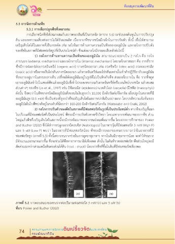 ฟอสฟอรัสสูง (ภาพที่ 5.3) ทั้งนี้เพราะขนรากช่วยในการดูดธาตุอาหาร หากในดินมีธาตุอาหารน้อย จะทำให้ขนราก