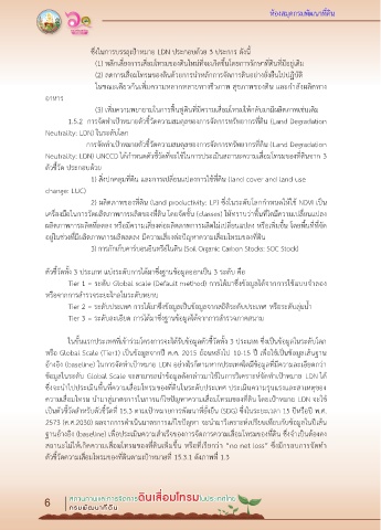 เป็นตัวชี้วัดส าหรับตัวชี้วัดที่ 15.3 ตามเป้าหมายการพัฒนาที่ยั่งยืน (SDG) ซึ่งในระยะเวลา 15 ปีหรือปี พ.ศ. Neutrality: LDN) และได้จัดท าแผนการด าเนินงาน LDN เพื่อขับเคลื่อนการจัดท าเป้าหมายความสมดุล