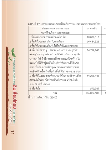 ตำรำงที่ 2.1 ความเหมาะสมของที่ดินเพื่อการเกษตรกรรมของประเทศไทย