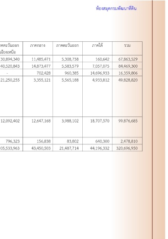 ห้องสมุดกรมพัฒนาที่ดิน รวม ภาคใต้ 67,863,529 160,642 84,469,300 7,057,075 16,359,806 14,696,933 49,828,820 4,933,812 99,876,685 18,707,570 640,300 320,696,950 44,196,332
