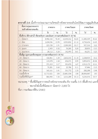 ตำรำงที่ 2.4 เนื้อที่การประมาณการเกิดชะล้างพังทลายของดินโดยใช้สมการสูญเสียดินสากล (Universal Soil Loss Equation: USLE) เป็นรายภาคและประเทศ