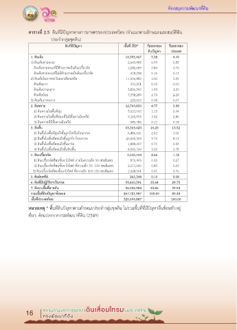 ตำรำงที่ 2.5 ดินที่มีปัญหาทางการเกษตรของประเทศไทย (จ าแนกตามลักษณะและสมบัติดิน ตำรำงที่ 2.6 พื้นที่ที่พบดินมีปัญหาแยกตามลักษณะพื้นที่