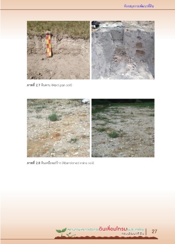 ห้องสมุดกรมพัฒนาที่ดิน ภำพที่ 2.7 ดินดาน (Hard pan soil) ภำพที่ 2.8 ดินเหมืองแร่ร้าง (Abandoned mine soil) สถานภาพและการจัดการดินเสื่อมโทรมในประเทศไทย 27 กรมพัฒนาที่ดิน