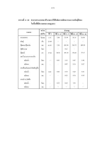 ตารางที่ 4 - 20 จํานวนแรงงานและปริมาณการใชปจจัยการผลิตมะขามหวานพันธุสีทอง