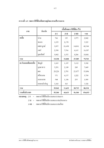 ตารางที่ 6-1 เขตการใชที่ดินพืชเศรษฐกิจมะขามเปนรายภาค