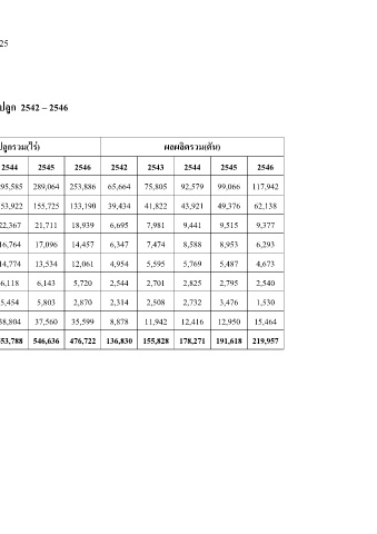 ผลผลิตรวม(ตัน) 2544 92,579 43,921 9,441 8,588 5,769 2,825 2,732 11,942 12,416 12,950 15,464