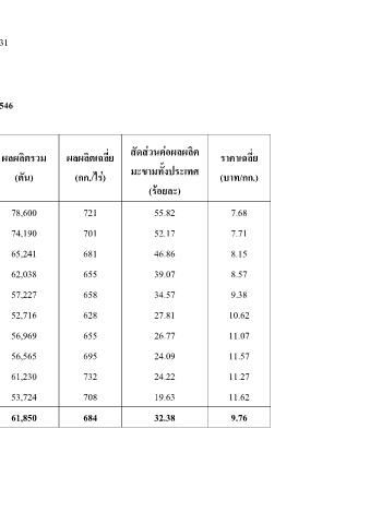 ผลผลิตรวม (ตัน) 78,600 74,190 65,241 62,038 57,227 52,716 56,969 56,565 61,230 53,724 61,850