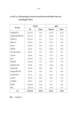 ตารางที่ 2-11 ปริมาณและมูลคาการสงออกมะขามแหงของประเทศไทยเปนรายประเทศ