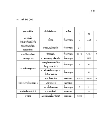 ตารางที่ 3-2 (ตอ) คุณภาพที่ดิน ความชุมชื้น ที่เปนประโยชนตอพืช ความเปนประโยชน ของออกซิเจน ความเปนประโยชน ของธาตุอาหาร การดูดยึดธาตุอาหาร สภาวะการหยั่งลึกของราก การมีเกลือมากเกินไป สารพิษ