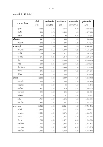 เนื้อที่ ผลผลิตเฉลี่ย ผ ล ล ตรวม ราคาผลผลิต ม ู ลคาผลผลิต