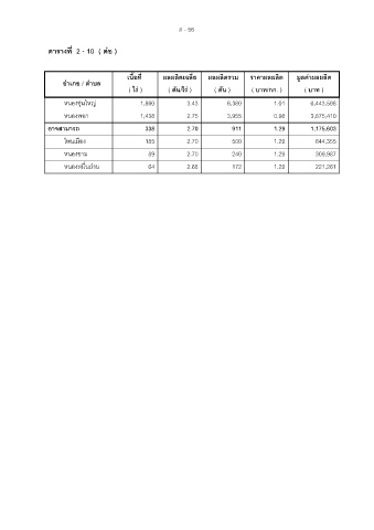 เนื้อที่ ผลผลิตเฉลี่ย ผ ล ล ิ ผ ตรวม ราคาผลผลิต ม ู ลคาผลผลิต