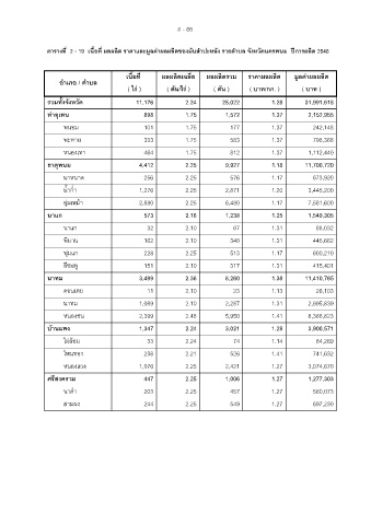 ตารางที่ 2 - 19 เนื้อที่ ผลผลิต ราคาและมูลคาผลผลิตของมันสําปะหลัง รายตําบล จังหวัดนครพนม ปการผลิต 2548