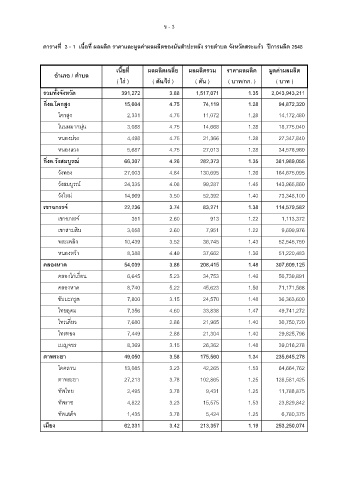 เนื้อที่ ผลผลิตเฉลี่ย ผ ล ล ตรวม ราคาผลผลิต ม ู ลคาผลผลิต