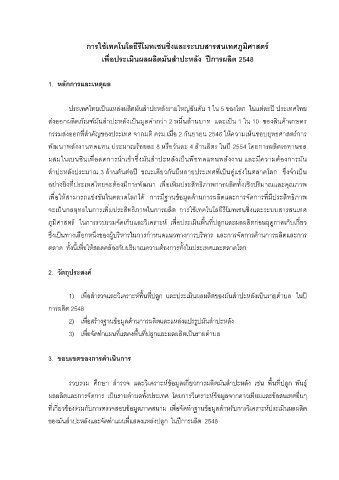 ที่เกี่ยวของรวมกับการตรวจสอบขอมูลภาคสนาม เพื่อจัดทําฐานขอมูลสําหรับการวิเคราะหประเมินผลผลิต