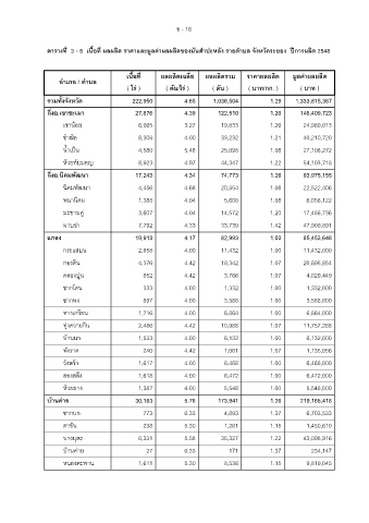 ตารางที่ 3 - 5 เนื้อที่ ผลผลิต ราคาและมูลคาผลผลิตของมันสําปะหลัง รายตําบล จังหวัดระยอง ปการผลิต 2548