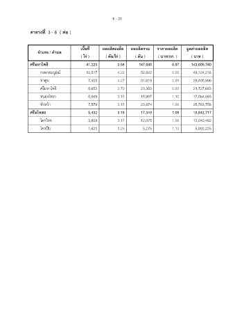 เนื้อที่ ผลผลิตเฉลี่ย ผ ล ล ิ ผ ตรวม ราคาผลผลิต ม ู ลคาผลผลิต
