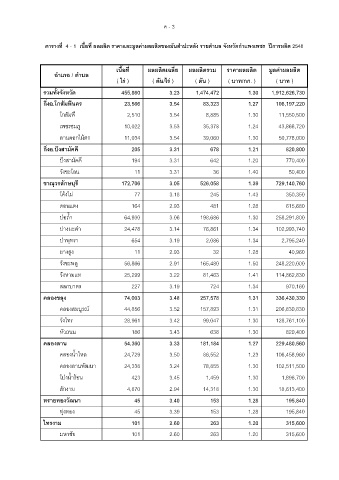 ตารางที่ 4 - 1 เนื้อที่ ผลผลิต ราคาและมูลคาผลผลิตของมันสําปะหลัง รายตําบล จังหวัดกําแพงเพชร ปการผลิต 2548