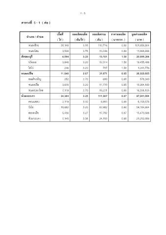เนื้อที่ ผลผลิตเฉลี่ย ผ ล ล ิ ผ ตรวม ราคาผลผลิต ม ู ลคาผลผลิต