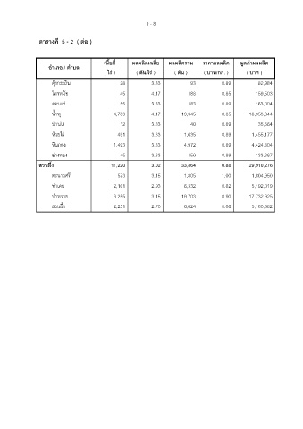 เนื้อที่ ผลผลิตเฉลี่ย ผ ล ล ิ ผ ตรวม ราคาผลผลิต ม ู ลคาผลผลิต