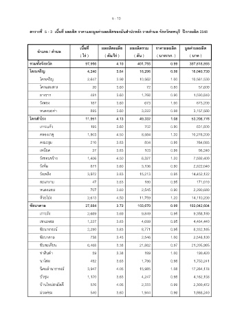 ตารางที่ 5 - 3 เนื้อที่ ผลผลิต ราคาและมูลคาผลผลิตของมันสําปะหลัง รายตําบล จังหวัดลพบุรี ปการผลิต 2548