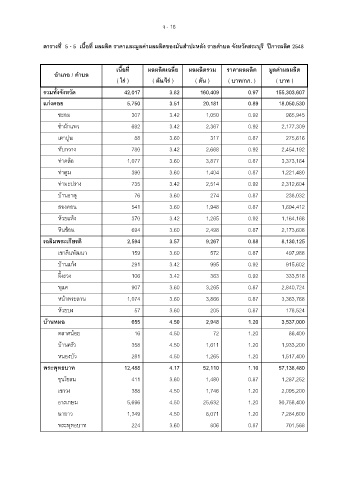 ตารางที่ 5 - 5 เนื้อที่ ผลผลิต ราคาและมูลคาผลผลิตของมันสําปะหลัง รายตําบล จังหวัดสระบุรี ปการผลิต 2548