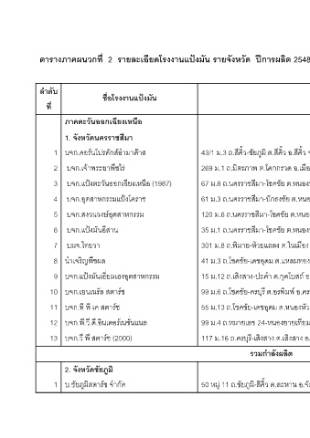 ตารางภาคผนวกที่ 2 รายละเอียดโรงงานแปงมัน รายจังหวัด ปการผล