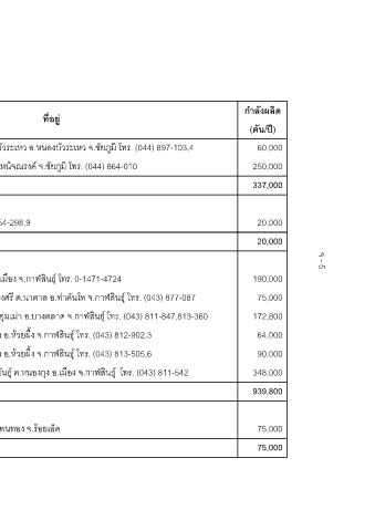 กําลังผลิต (ตัน/ป) 60,000 250,000 337,000 20,000 20,000 190,000 75,000 172,800 64,000 90,000 348,000 939,800 75,000 75,000