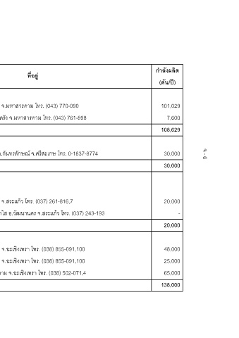 กําลังผลิต (ตัน/ป) 101,029 7,600 108,629 30,000 30,000 20,000 - 20,000 48,000 25,000 65,000 138,000