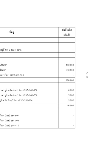 146 ม.3 ต.เขาวงกต อ.เขาวงกต จ.จันทบุร ิต รวมกาลงผล ั ํ 82 ม.1 ต.บางสมัคร อ.บางปะกง จ.ฉะเชิงเทรา 57/10 ต.บางปะกง อ.บางปะกง จ.ฉะเชิงเทรา ินซอน อ.พนมสารคาม จ.ฉะเชิงเทรา โทร. (038) 599-070 ต.เขาห รวมกําลังผลิต ื 89 ม.16 ถ.ส ื 126 ม.8 ถ.ส ิ 144 ถ.ส รวมกําลังผลิต ื ถ.เศรษฐกิจ ต.หนองร ื ต.หนองร ี ิจ .เศรษฐก ื ต.หนองร ี ิจ .เศรษฐก