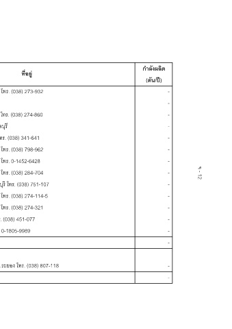 ตารางภาคผนวกที่ 3 ( ตอ ) ลําดับ ที่ บ.โมเดิร นมาเก็ตติ้ง จํากัด 4 ี ุ บ.กิจไพบ ูลยชลบร จํากัด 5 บ.ศิร ิไพศาลพืชผล จํากัด 6 บ.ตั้งส 7 ัจจา จํากัด ื บ.ร 8 ุงเรองธัญกิจ จํากัด ิญมันสาปะหลงไทย จํากัด ํ บ.ป เจร 9 ั ุงทรพยการเกษตร จํากัด บ.ร 10 11 บ.เอกธนาพืชผล จํากัด บ.ทองทาปโอกา(1999) จํากัด 12 บ.ชัยเจร 13