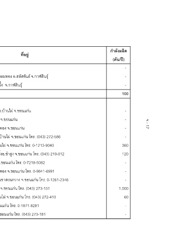 กําลังผลิต (ตัน/ป) - - - 100 - - - - 360 120 - - - 1,000 60 - -
