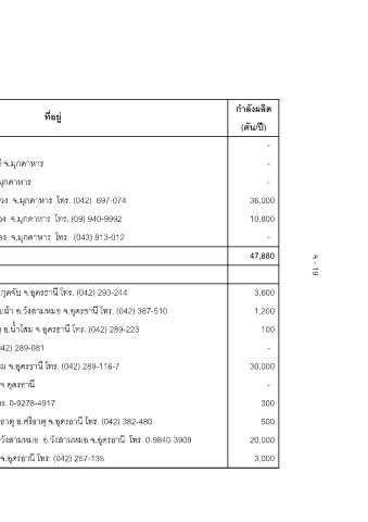 กําลังผลิต (ตัน/ป) - - - 36,000 10,800 - 47,880 3,600 1,200 100 - 30,000 - 300 500 20,000 3,000