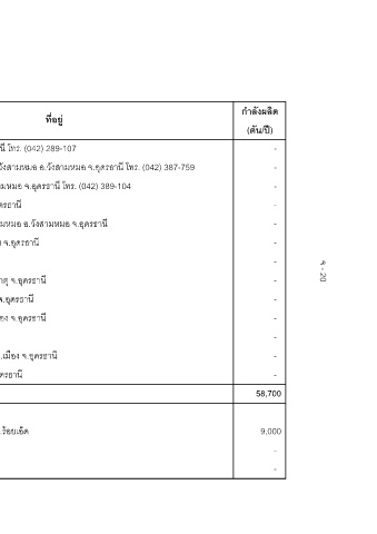 กําลังผลิต (ตัน/ป) - - - - - - - - - - - - - 58,700 9,000 - -