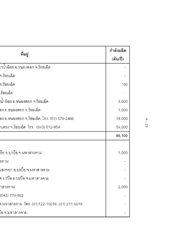 กําลังผลิต (ตัน/ป) - - 100 - 4,000 1,000 18,000 54,000 86,100 1,000 - - - 2,000 - - -