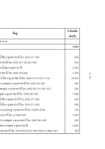 กําลังผลิต (ตัน/ป) - 3,000 850 350 2,000 1,500 10,000 400 200 1,500 400 400 100 7,000 200 3,250 300