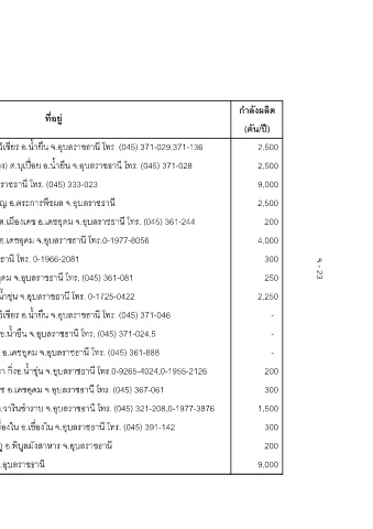 ุ ุเปอย อ.นายืน จ.อบลราชธานี โทร. (045) 333-023 ื ุ ุดม จ.อบลราชธานี โทร. 0-1966-2081 ุญจันทร ต.เมองเดช อ.เดชอดม จ.อบลราชธานี โทร. (045) 361-081 ุ ุ ้ํ ุ ิ ิมานกาล ต.กุดชมภ อ.พบลมังสาหาร จ.อบลราชธานี ู ิ