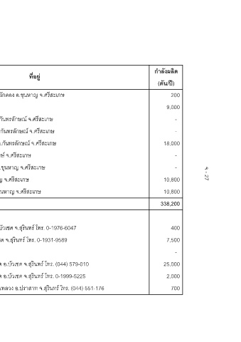 กําลังผลิต (ตัน/ป) 200 9,000 - - 18,000 - - 10,800 10,800 338,200 400 7,500 - 25,000 2,000 700