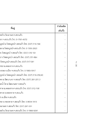 ู ุงกบนทร ต.วังทอง อ.วังสมบรณ จ.สระแกว โทร. 0-1305-2923 ี ต.วังสมบรณ อ.วังสมบรณ จ.สระแกว โทร. (037) 516-164 ี ต.วังใหม อ.วังสมบรณ จ.สระแกว โทร. (037) 517-091 ู