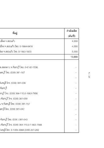 กําลังผลิต (ตัน/ป) 4,000 4,000 5,000 13,000 - - - - - - - - - - - - -