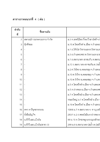 ิมิตร ม.3 ถ.กําแพงเพชร ต.วังหามแห อ.ขาณ ม.12 ถ.สลกบาตร-เขาชนกัน ต.บ ม.2 ต.วังไทร อ.คลองขล ม.10 ต.วังไทร อ.คลองขล ม.10 ต.วังไทร อ.คลองขล างทอง อ.เมอง จ.กําแพงเพชร ื หนองใหญ ม.7 ต.ไตรตรึงษ อ.เม 108/6 ม.7 ต.สลกบาตร อ. ขาณ 283/1 ม.2 ถ.พหลโยธิน ต.อ 299 ม.9 ถ.สลกบาตร-บ