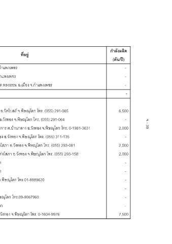กําลังผลิต (ตัน/ป) - - - - 6,500 - 2,000 - 2,000 2,000 - - - - - - 7,500