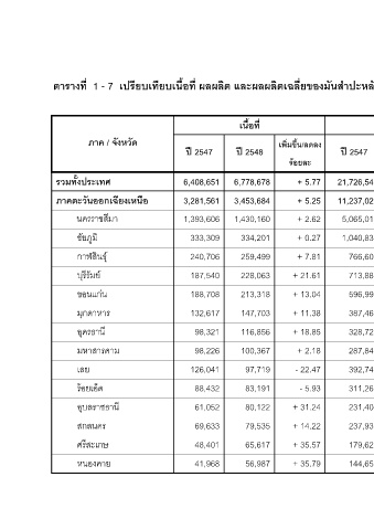 ี่ ี่ 1 - 7 เปรยบเทยบเนอท ผลผลิต และผลผลิตเฉลยของมันสําปะหลง รายจังหวัด ปการผลต 2547 - 48 อยละ