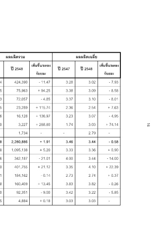ึ้น/ลดลง อยละ - 11.47 + 94.25 - 4.85 + 115.74 + 136.97 + 288.80 - + 1.91 + 5.20 - 21.01 + 21.12 - 0.14 + 13.45 - 9.00 + 0.18