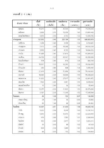 เนื้อที่ ผลผลิตเฉลี่ย ผลผลิตรวม ราคาผลผลิต มูลคาผลผลิต