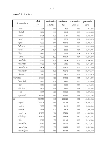 เนื้อที่ ผลผลิตเฉลี่ย ผลผลิตรวม ราคาผลผลิต มูลคาผลผลิต